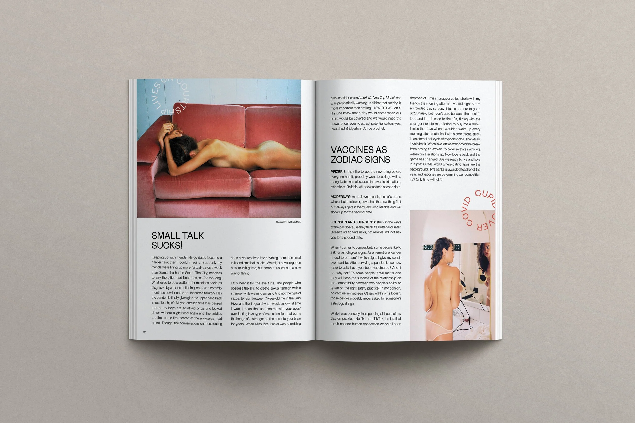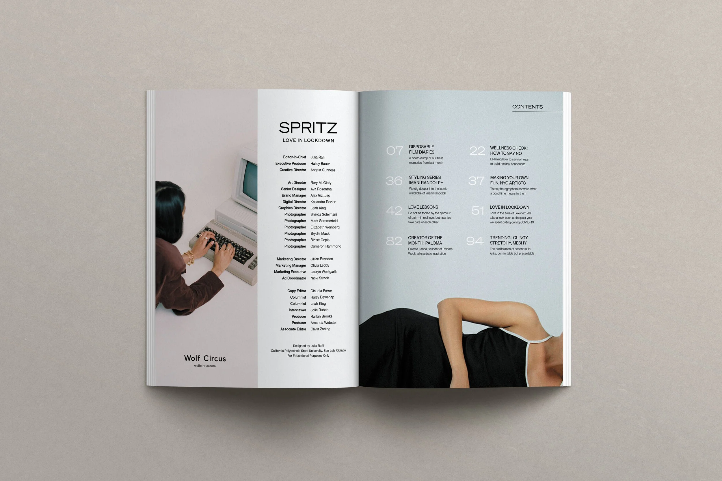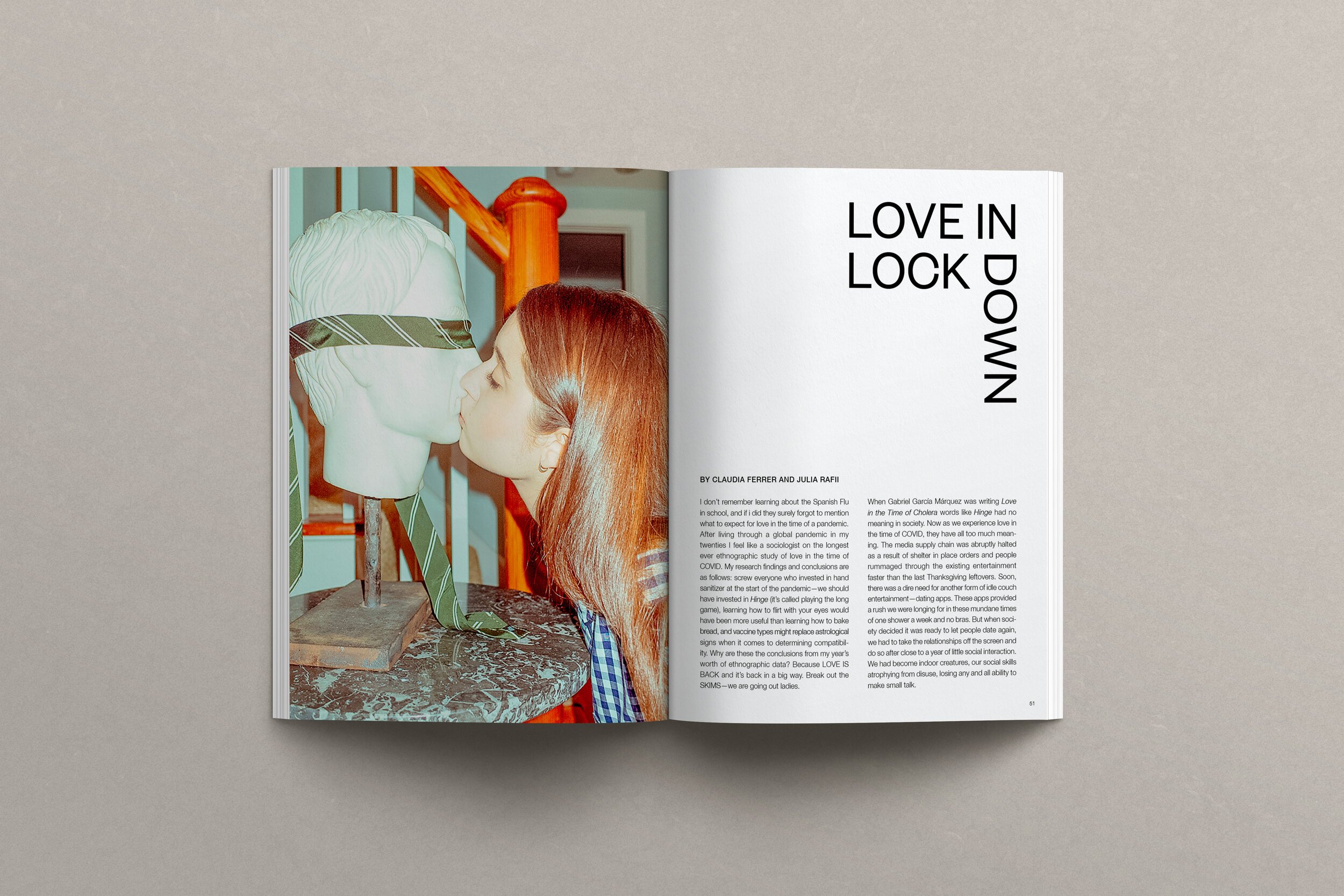 Spritz is a modern magazine that explores the intersection between eclectic fashion, contemporary culture, and lifestyle. Spritz features a wide variety of artists, companies, and spaces that all spark creativity. Bold and experimental, it offers an intriguing, alternative voice in the creative community. I wrote an article with a peer to feature in my magazine inspired by the early days of quarantine. The article, Love in Lockdown, uncovers the ups and downs of exploring love in lockdown.